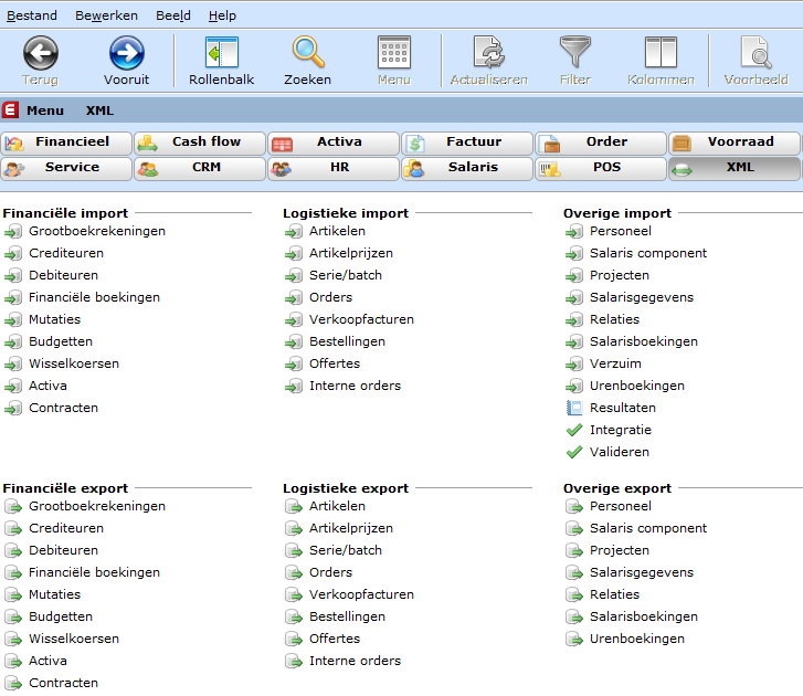 Het gegenereerde *.xml formaat kan ingelezen worden in het menu XML in Exact Globe. Hiervoor is wel de betreffende Exact Globe XML server module benodigd.